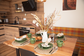 Apartmán Stopa je skvělou volbou pro pohodový pobyt v páru, s dětmi nebo v menší skupince. Má dispozici 2+kk a nabízí vše potřebné pro příjemný odpočinek. V ložnici najdete pohodlnou manželskou postel s úložným prostorem, zabudovanou lavicí a vstupem na terasu. V obýváku se nachází plnohodnotný rozkládací gauč pro další 2 osoby. Kuchyň je plně a moderně vybavená všemi důležitými spotřebiči, jako je trouba, indukční varná deska, překapávač i myčka, takže si kdykoli můžete něco uvařit. Interiér je laděn do přírodních tónů. Z obýváku a ložnice vede vstup na prostornou terasz s krásným výhledem do přírody – žádný hluk, jen klid a pohoda. K dispozici je také společná zahrada s ohništěm, ideální pro večerní posezení u ohně, na kterou je přímý vstup na zahradu. A pokud s sebou přivezete kola, lyže, kočárek nebo třeba basu piv, vše pohodlně uložíte do uzamykatelné kóje u schodiště vedoucího k apartmánu.